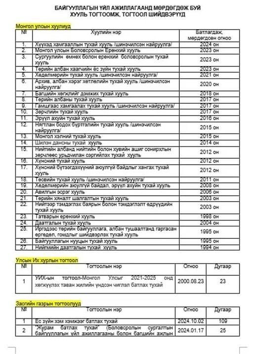 ХУУЛИЙН ХЭРЭГЖИЛТИЙН ТАЙЛАН