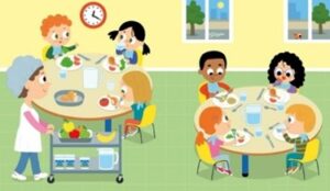 7.Өдрийн хоол12:00-12:50–       Гараа угаах–       Ширээ засах–       Жижүүрийн үүрэг гүйцэтгэх–       Хоолны ширээ цэгцлэх–       Аяга таваг, сав суулга хураахад туслах